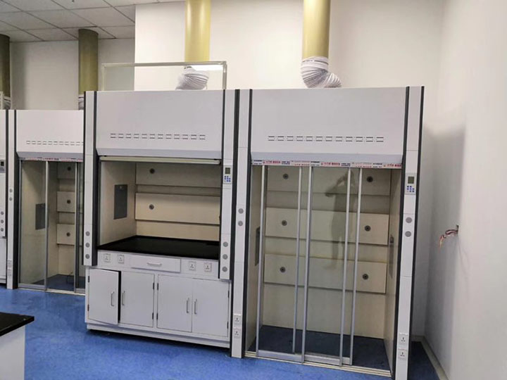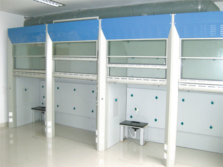 (1)落地型通風柜結構為落地型。柜體正、側上面板及框架均采用1.2MM厚冷軋鋼板制作,鋼板表面處理為磷化后噴塑(淺灰色)。