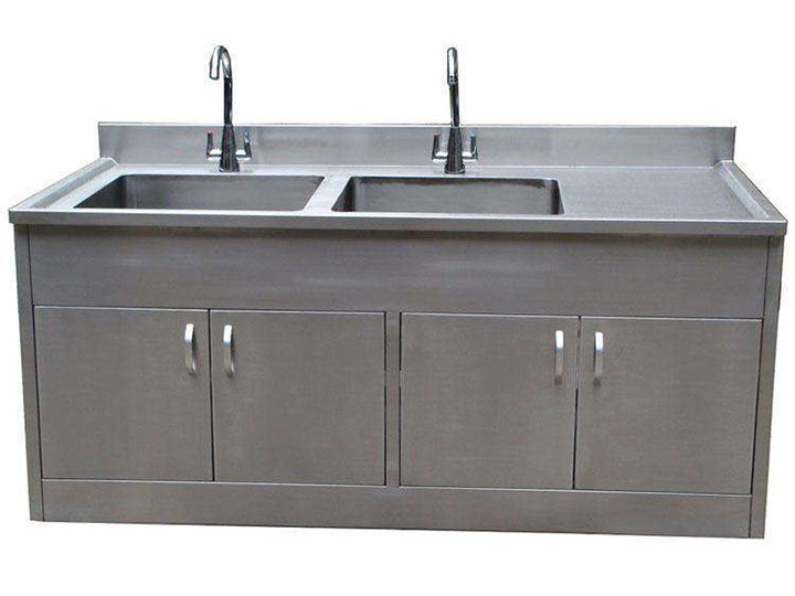 2.加工工藝:臺面板內側增加100mm不銹鋼擋板,臺面下緣底部并加工止水溝防止積水滴入柜體內。